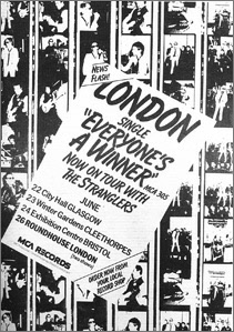 Well I needn't have worried. London and hit singles were never going to be a viable combination. Our first single Everyone's a Winner came out halfway through the tour. We were in Newcastle upon Tyne and had gone to a music store to buy some guitar strings. I had stayed in the car parked outside the shop and the other three had gone in. Suddenly Dave came running out.